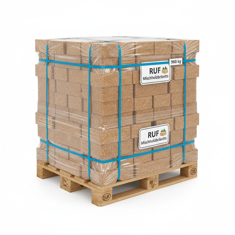 RUF Mischholzbriketts – Palette mit 960 kg · Effizient & Umweltfreundlich